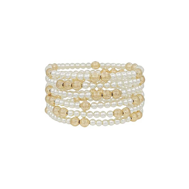 Gold Mixed Bead Irregular Pearl Bracelet Pack