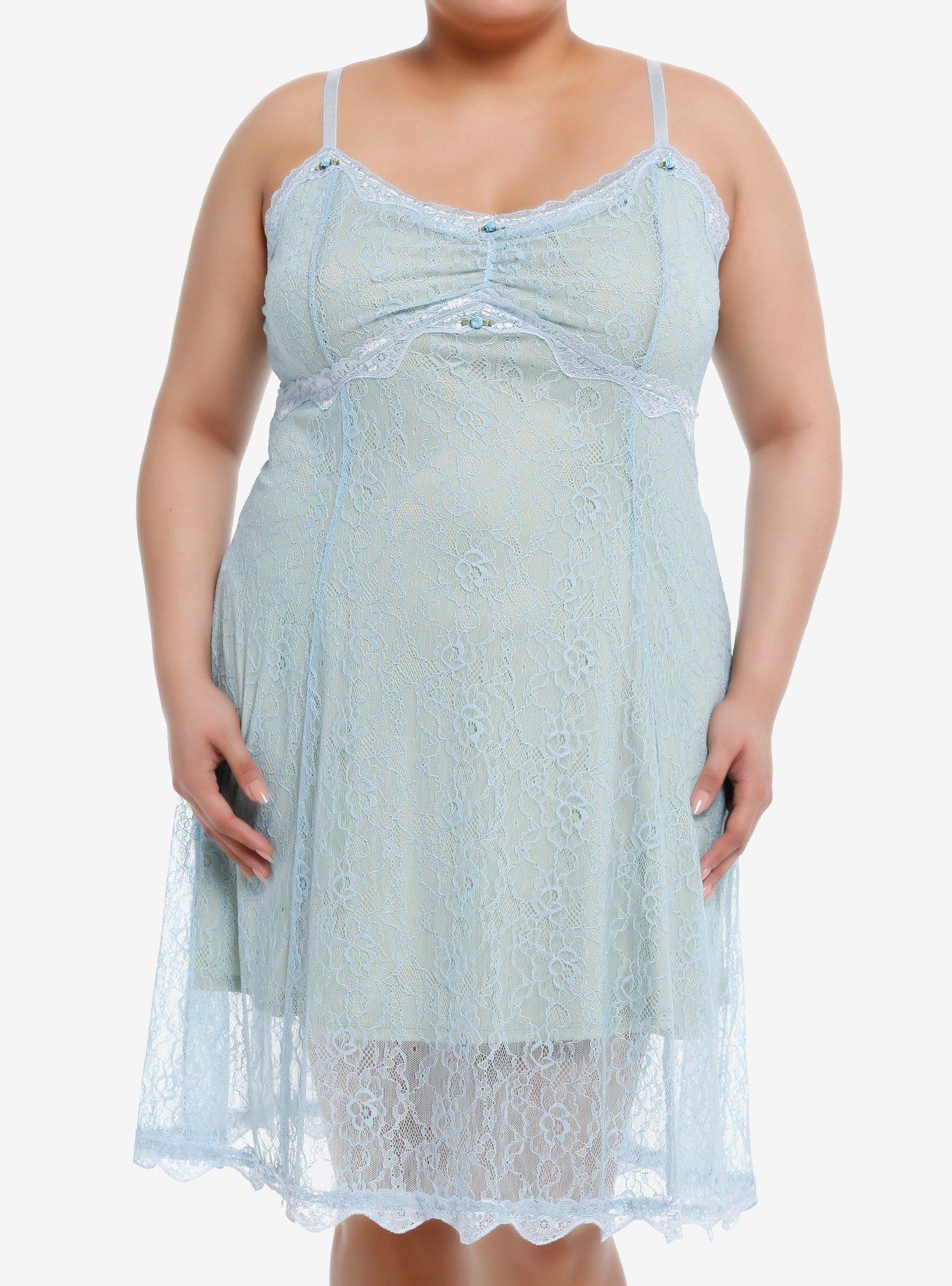 Thorn & Fable® Baby Blue Rosette Lace Cami Dress Plus Size