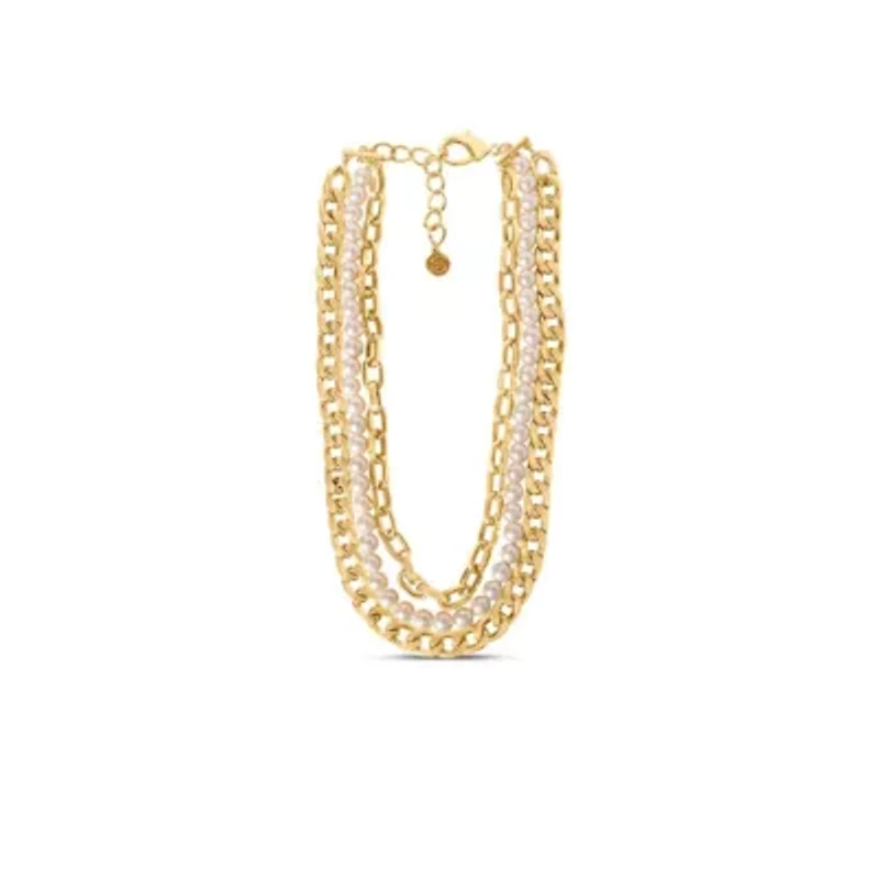 Three Strand Pearl and Chain Necklace In Gold in Franklin, TN