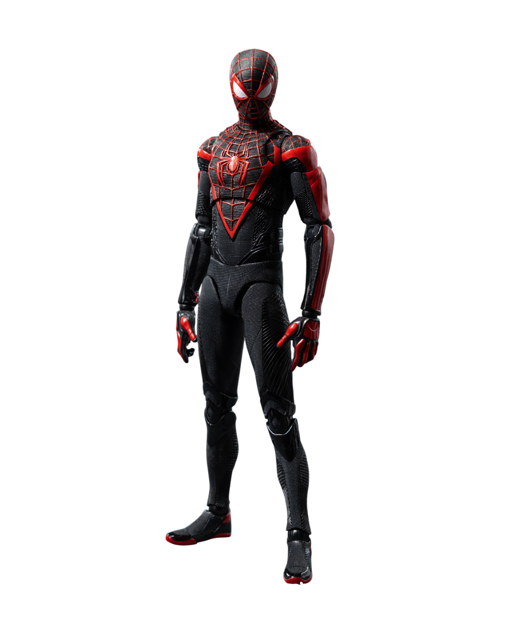 Accessories accompanying the DLX Spider-Man Upgraded Suit (Miles Morales) include two pairs of interchangeable eyes, a smartphone, and various interchangeable hands and spider webs, allowing for a wide range of poses and attack stances. A pair of thunder fist effect and a pair of thunder-shooting effect parts are also included, showcasing the stunning power of Miles' unique bio-electric venom blast attacks!