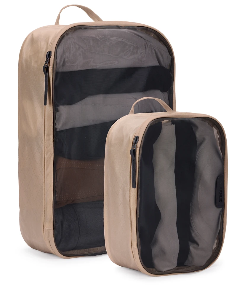 Thule packing cube set includes a medium and a small cube, sized to fit efficiently within most carry-on luggage and allows you to quickly identify and organize travel items.