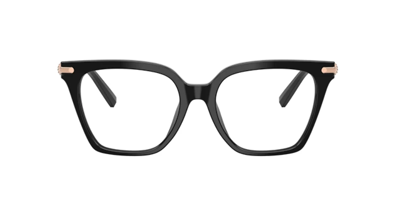 Tiffany & co. Tf2284b optical frames combine modern sophistication with timeless craftsmanship. The black square eyeglasses, made from durable plastic, feature bold angles for a structured look. Metal temples are adorned with the elegant knot by tiffany motif, enriched with 48 strass crystals for a touch of brilliance.