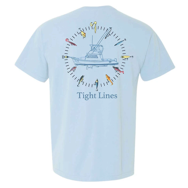 The COAST Tight Lines Graphic Pocket T-Shirt brings together classic comfort and laid-back fishing style. Made with soft, breathable cotton, this tee is designed for easy everyday wear whether you're on the water, at the dock, or relaxing after a long day outdoors. The front features a clean chest pocket with subtle Co