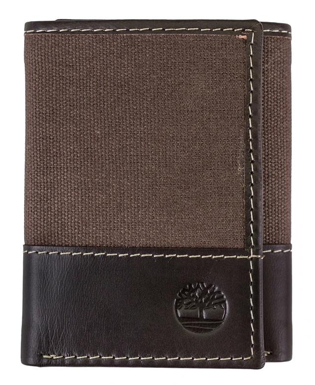 Timberland Men's Canvas Trifold Leather Wallet
