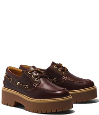 Timberland Women's Stone Street 3 Eye Leather Premium Platform Lug Sole Boat Shoes