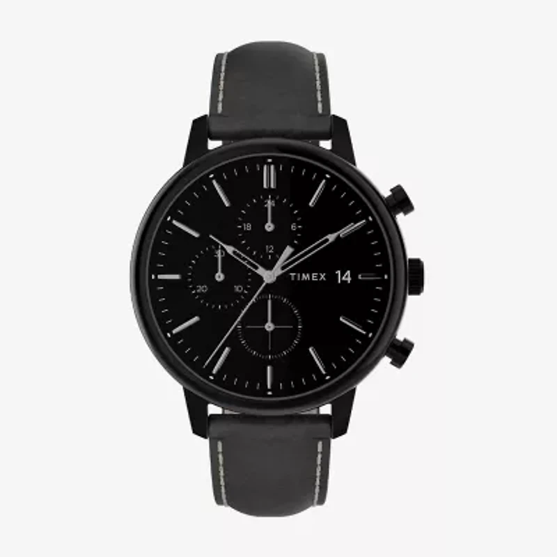 Timex Chicago Chrono Mens Chronograph Black Leather Strap Watch Tw2u39200vq