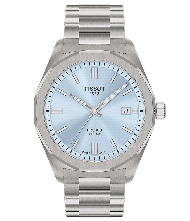 Tissot Men's PRC 100 Solar Classic Contemporary Collection Quartz Analog 316L Stainless Steel Bracelet Watch