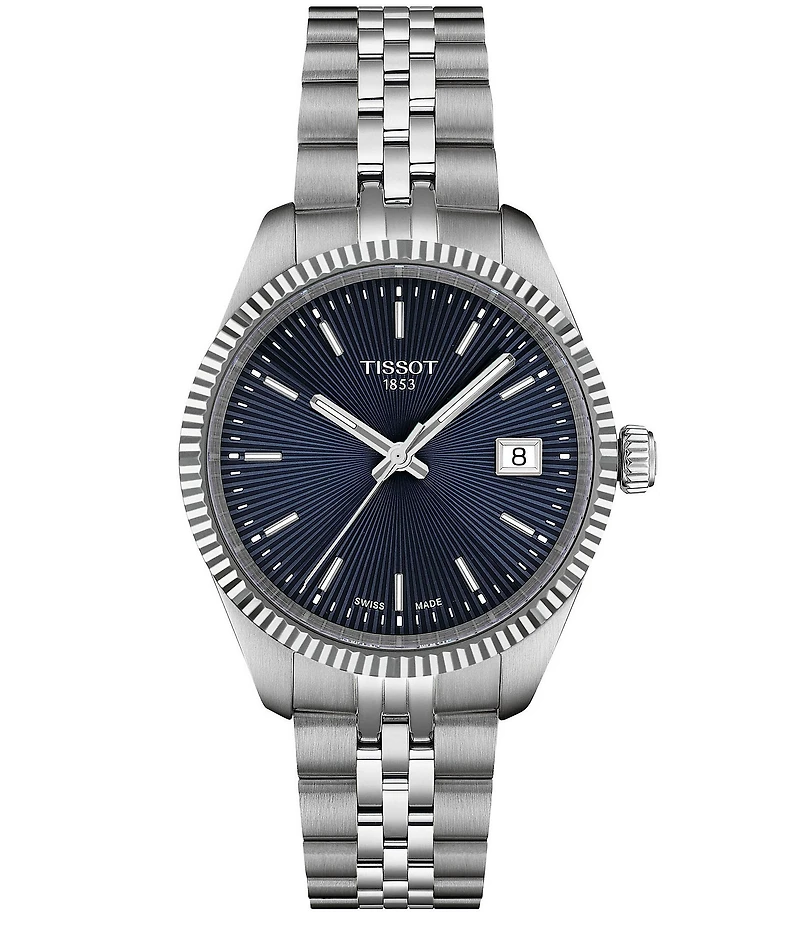 From Tissot, this watch features: Round case shape Approx. 34mm case size Scratch-resistant sapphire crystal with antireflective coating dial Quartz Analog movement 316L solid stainless steel bracelet Quick-release-bracelet closure Water-resistant up to a pressure of 10 Bar (100 M / 330 Ft) Imported.