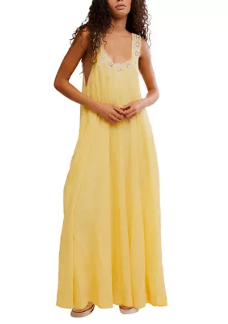 This Free People maxi dress is a breezy, sleeveless sundress featuring a flattering scoop neckline and a back tie closure for a feminine touch. Tie closure Scoop neck Sleeveless Unlined Imported Product Specifications 50" L Material & Care Cotton Machine washable