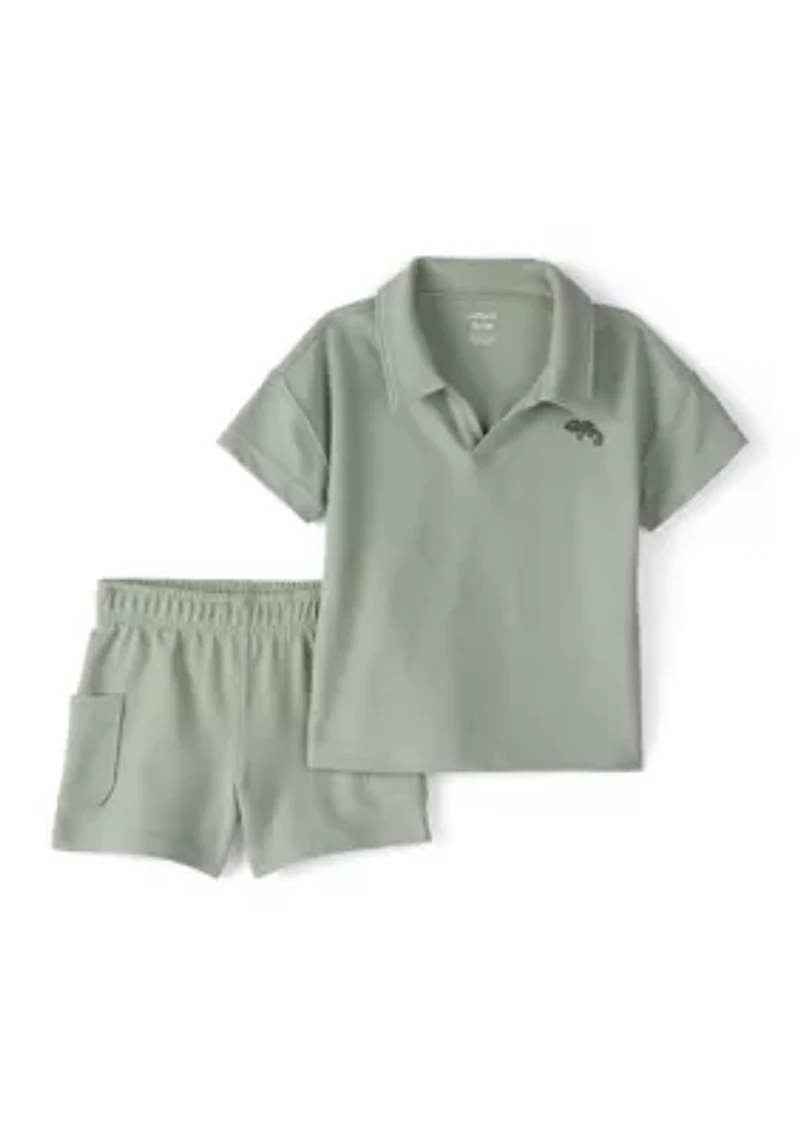 Dress your little one in comfort and style with this essential 2-piece top and short set from Carter's®. Made from soft, breathable fabric, it keeps your toddler cool during warm days. The easy shorts feature a comfy elastic waistband, making dressing a breeze for busy mornings. The classic polo-style top adds a touch of charm while ensuring your child looks sharp for any casual outing. With its versatile hue, this set pairs effortlessly with their favorite sneakers or sandals. Trust in a brand that understands the needs of active toddlers and the parents who love them. 2 piece set Pullover Collar Imported Material & Care Cotton, polyester Machine washable