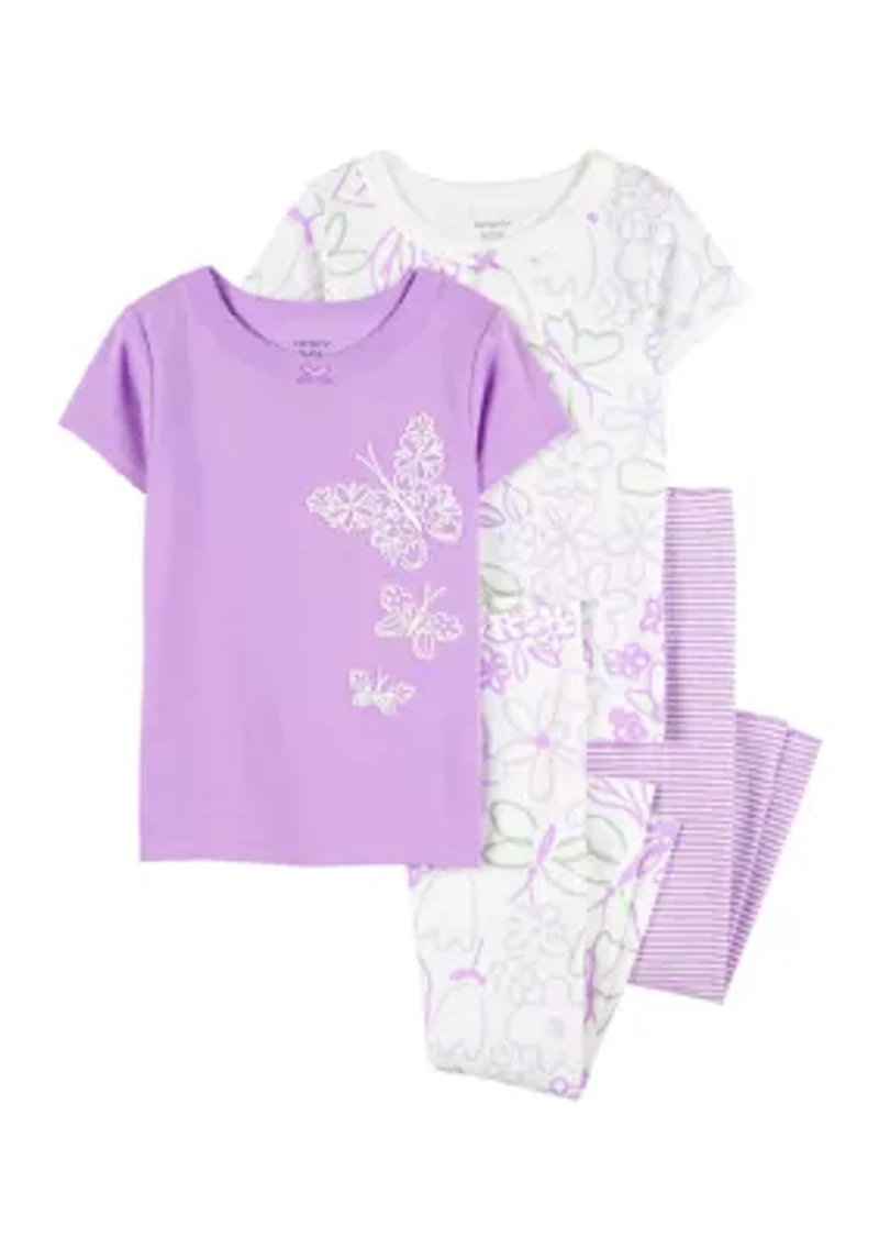Toddler Girls Butterfly Printed 4 Piece Pajama Set