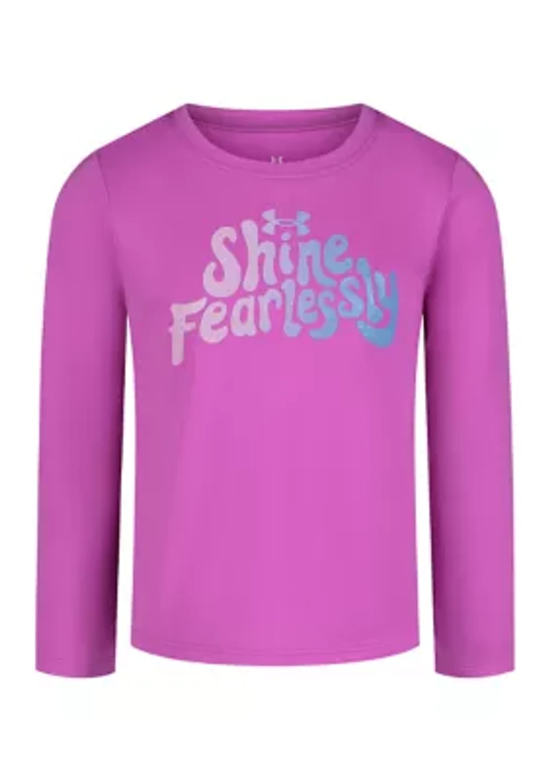 She'll wear a smile that shines fearlessly during playtime when you add this cute t-shirt from Under Armour® to her closet. Crafted with UA Tech™ fabric, this t-shirt is updated with a colorful front-facing graphic. Pullover Crew neck Long sleeves Imported Material & Care Polyester Machine washable