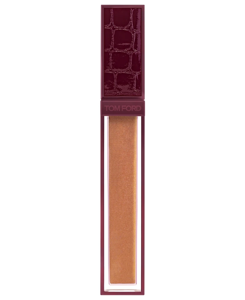 Inspired by light and movement, this gilded gloss from Tom Ford features shade-shifting pigments that transition from gold to a rosy-peach tone. The pearlescent formula creates a luminous, iridescent effect on the lips.