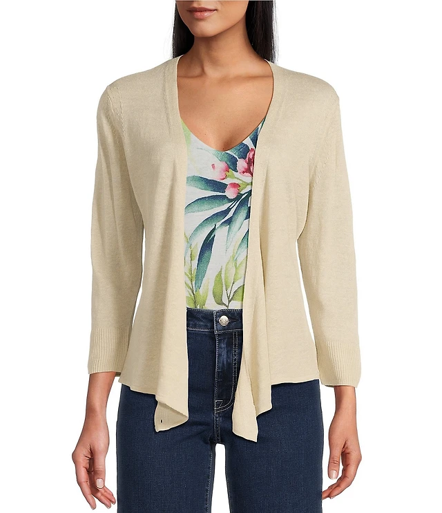 NIC + ZOE Lightweight 4-Way Linen Blend Open Front 3/4 Sleeve Cardigan