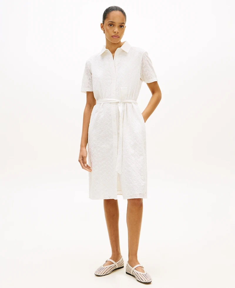 Classic charm defines this Tommy Hilfiger shirt dress, finished with delicate broderie detailing and a tailored silhouette. Polished styling adapts smoothly from casual settings to dressier occasions.
