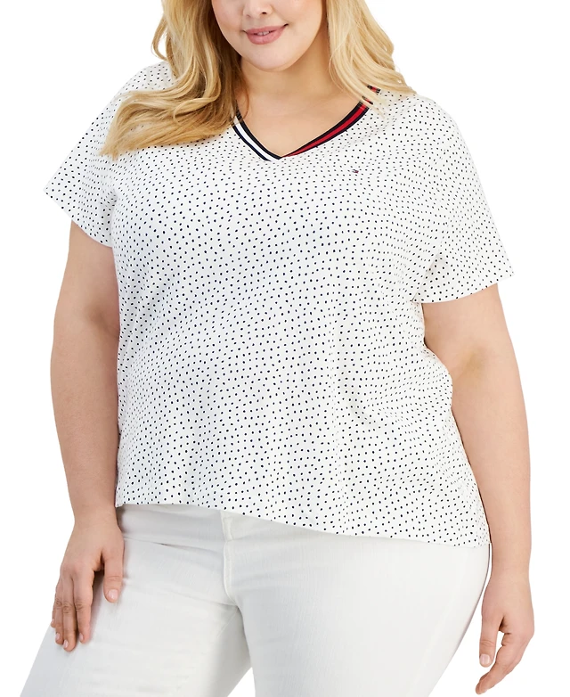 Tommy Hilfiger Plus Size V-Neck Dot-Print Top