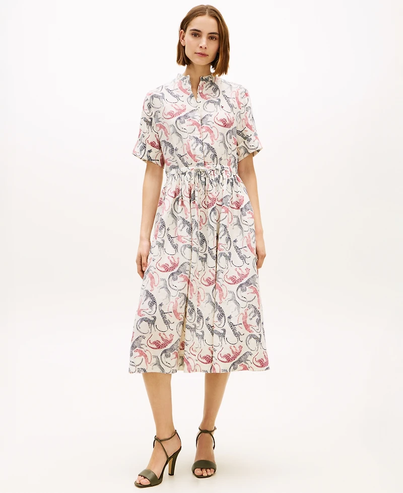 Essential versatility arrives in this linen midi shirt dress from Tommy Hilfiger, featuring button-front closure and relaxed yet polished silhouette. Lightweight breathable construction ensures all-day comfort, while classic design transitions effortlessly from daytime meetings to evening outings with sneakers or heels.