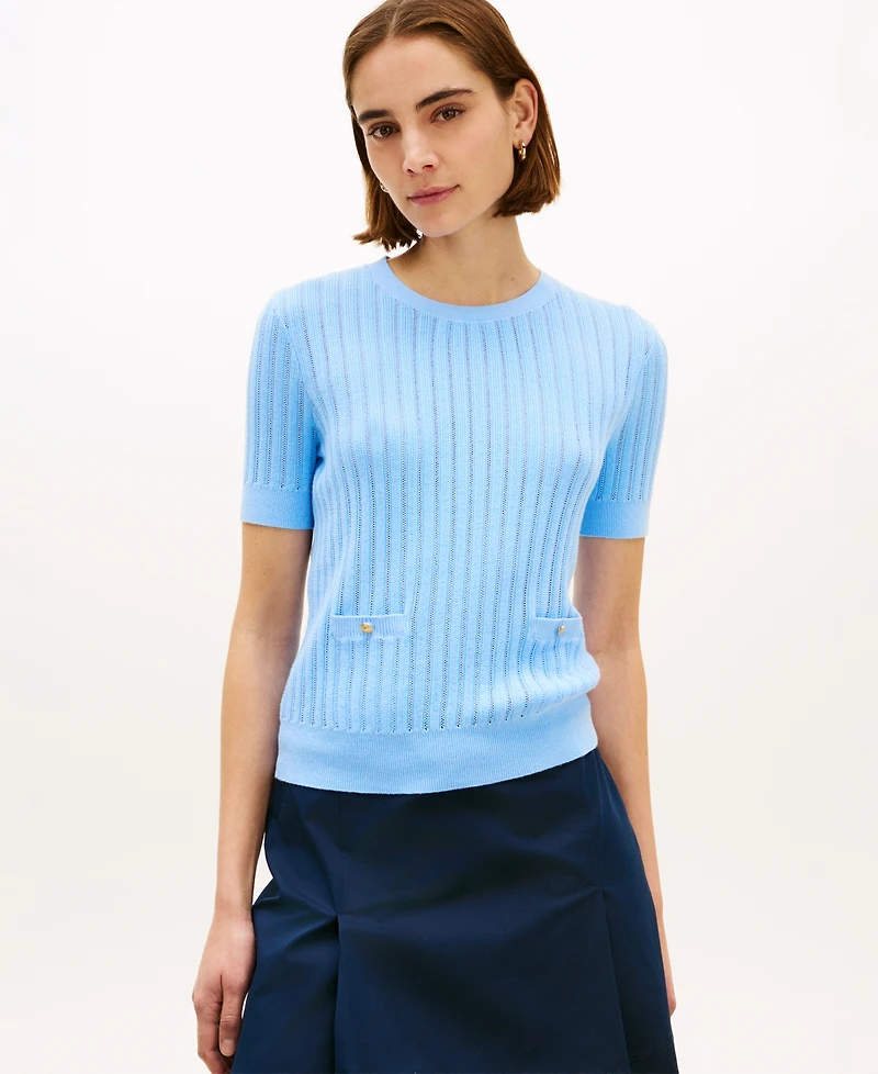 Tommy Hilfiger Women's Pointelle Ribbed Short-Sleeve Sweater