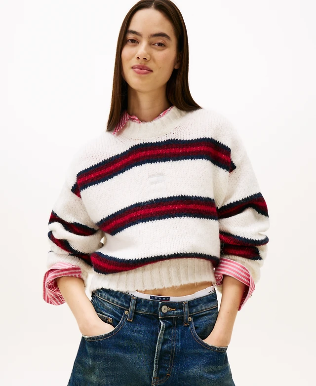 Tommy Jeans Women's Badge Stripe Fluffy Long Sleeve Sweater