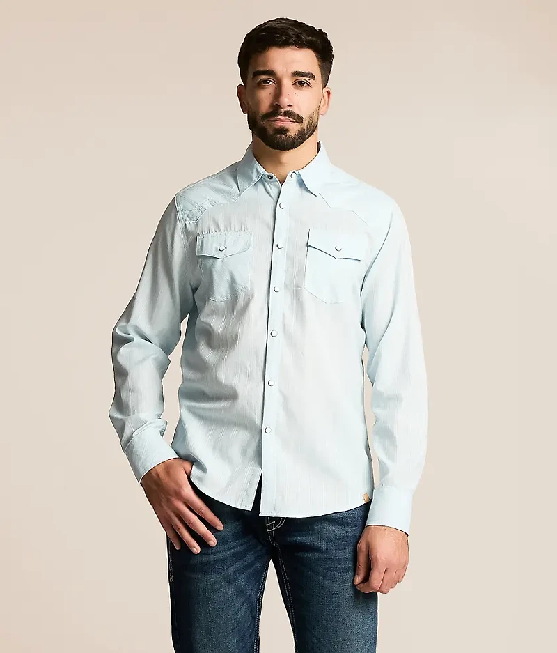 Woven snap front shirt Athletic fit is larger in the shoulders, chest, waist and arm holes and is longer in the arms and body