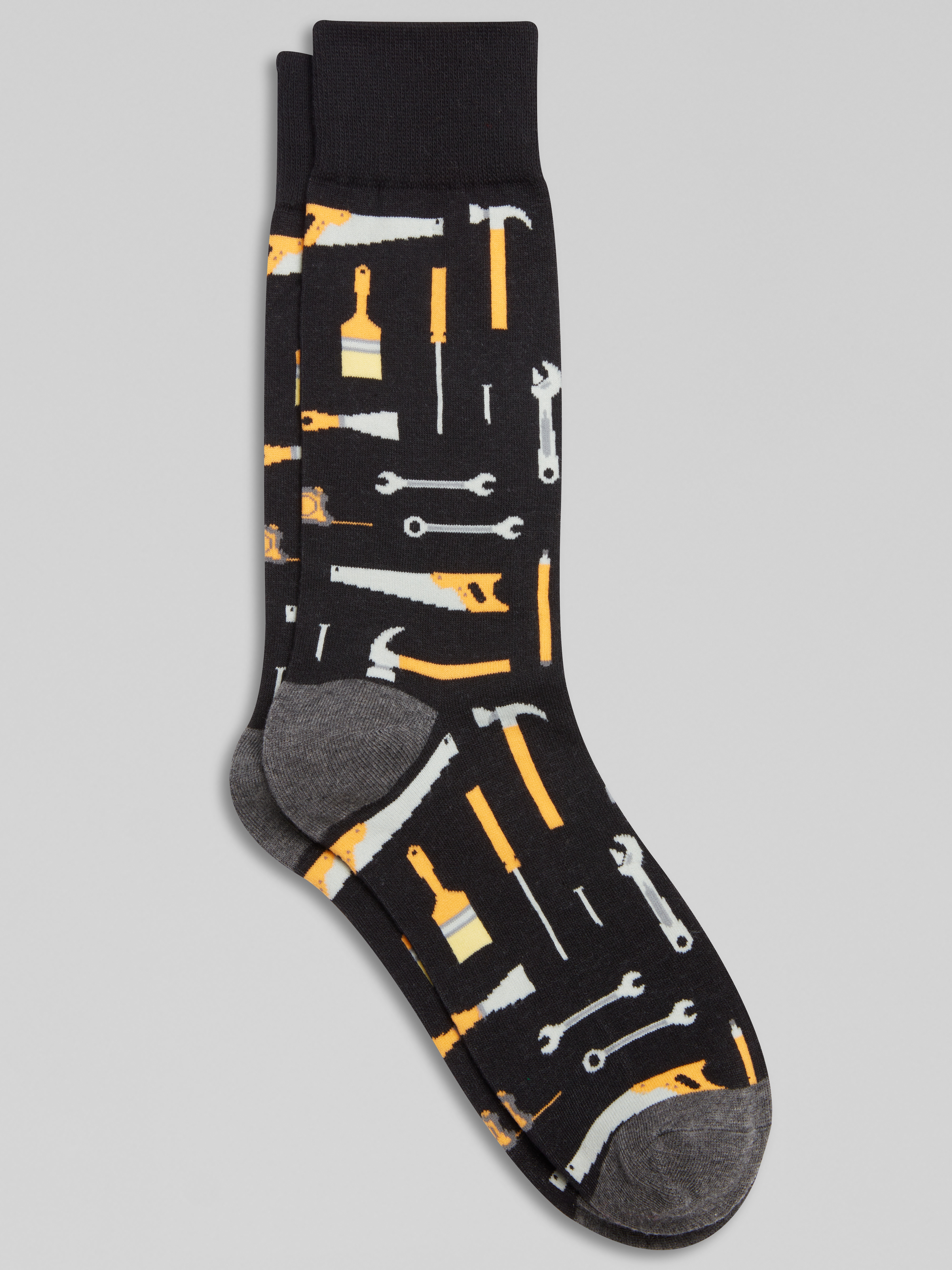 Hammer home your own unique style with these socks. Perfect for the handyman at heart, they feature an all-over pattern of tools. The comfy cotton blend keeps you on your toes.