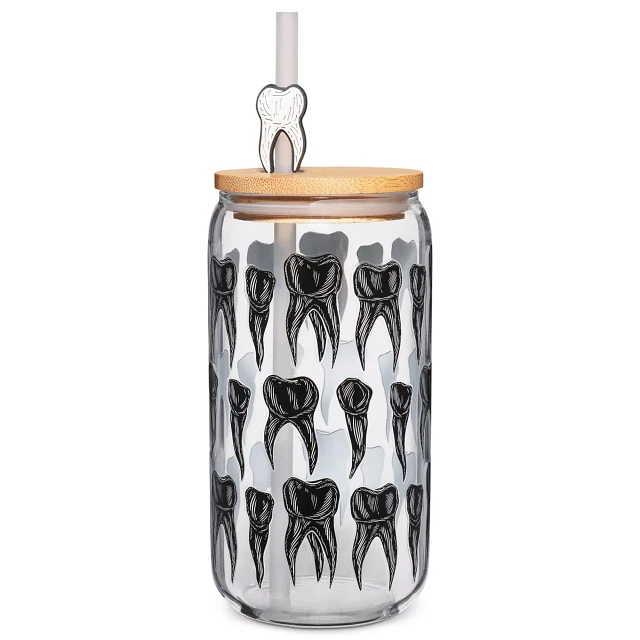 Harry Potter The Deathly Hallows Floral Glass Cup with Straw