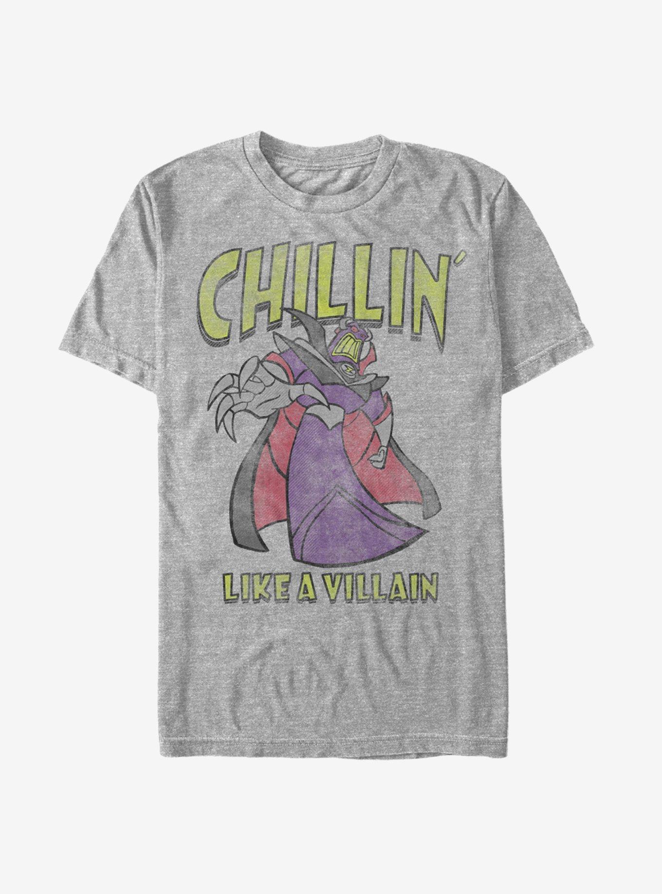 Star Command better watch out for the Toy Story Emperor Zurg Chillin Like a Villain Heather Gray T-Shirt! A distressed print on the front of this awesome gray Toy Story shirt reads "Chillin' Like a Villain" around Buzz Lightyear's archenemy Emperor Zurg. 60% Cotton, 40% Polyester.