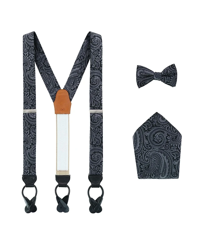 Trafalgar Men's Sobee Paisley Brace Bow Tie & Pocket Square Set