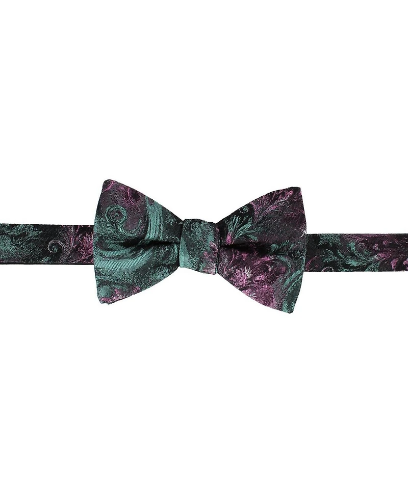 Command the room with the refined charm of The Arcane Storm Silk Novelty Bow Tie. Featuring a captivating fusion of lush emerald green, royal pink, and shimmering Lurex accents, this bow tie brings a sophisticated edge to classic formal wear. Perfect for the modern gentleman who values tradition with a bold, artistic twist. Adjustable from 14 1/2 to 20 inches. If you love this design, check out the rest of the collection that includes suspenders, pocket squares, and neckties..