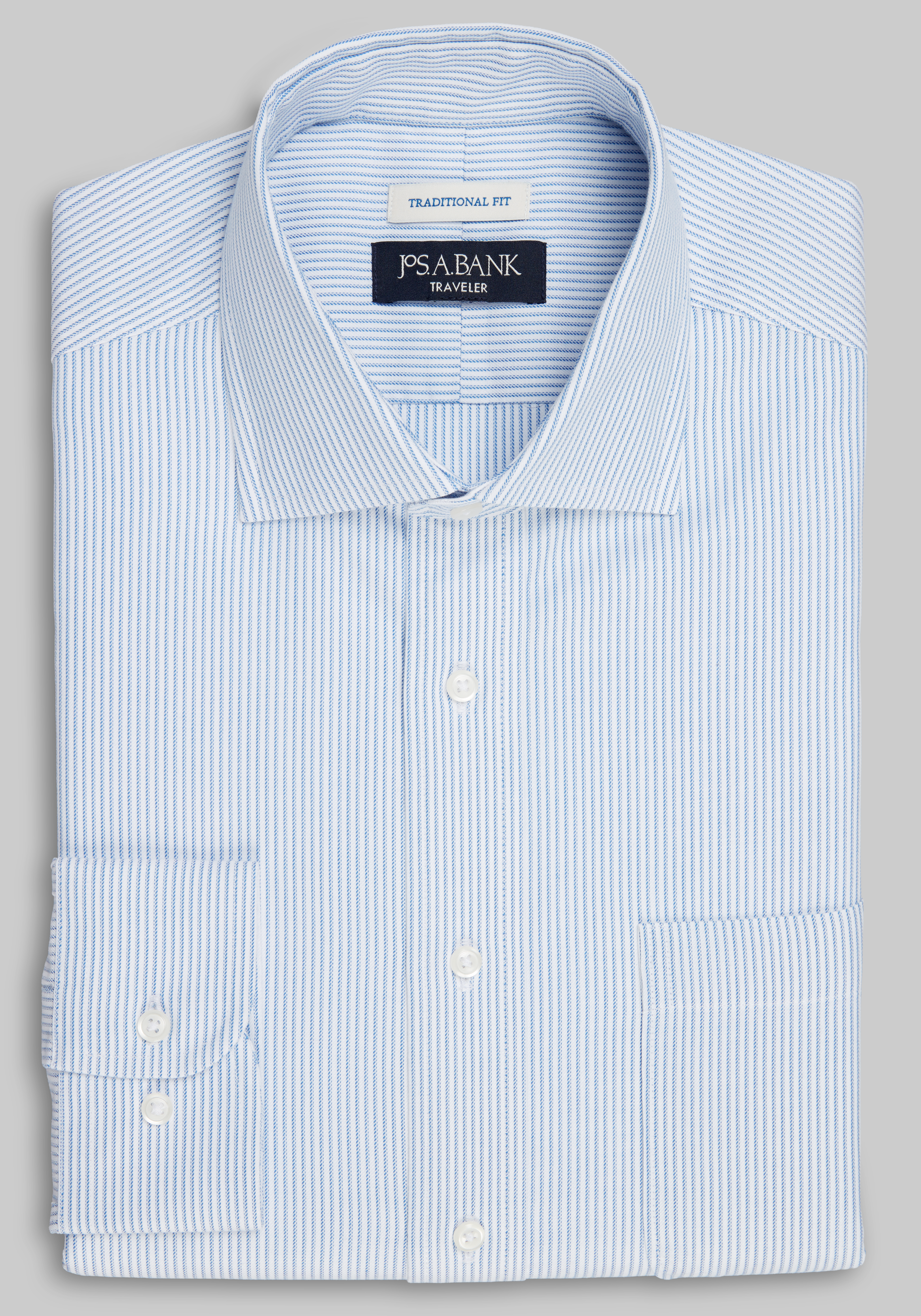 Traveler® Collection Traditional Fit Spread Collar Stripe Dress Shirt