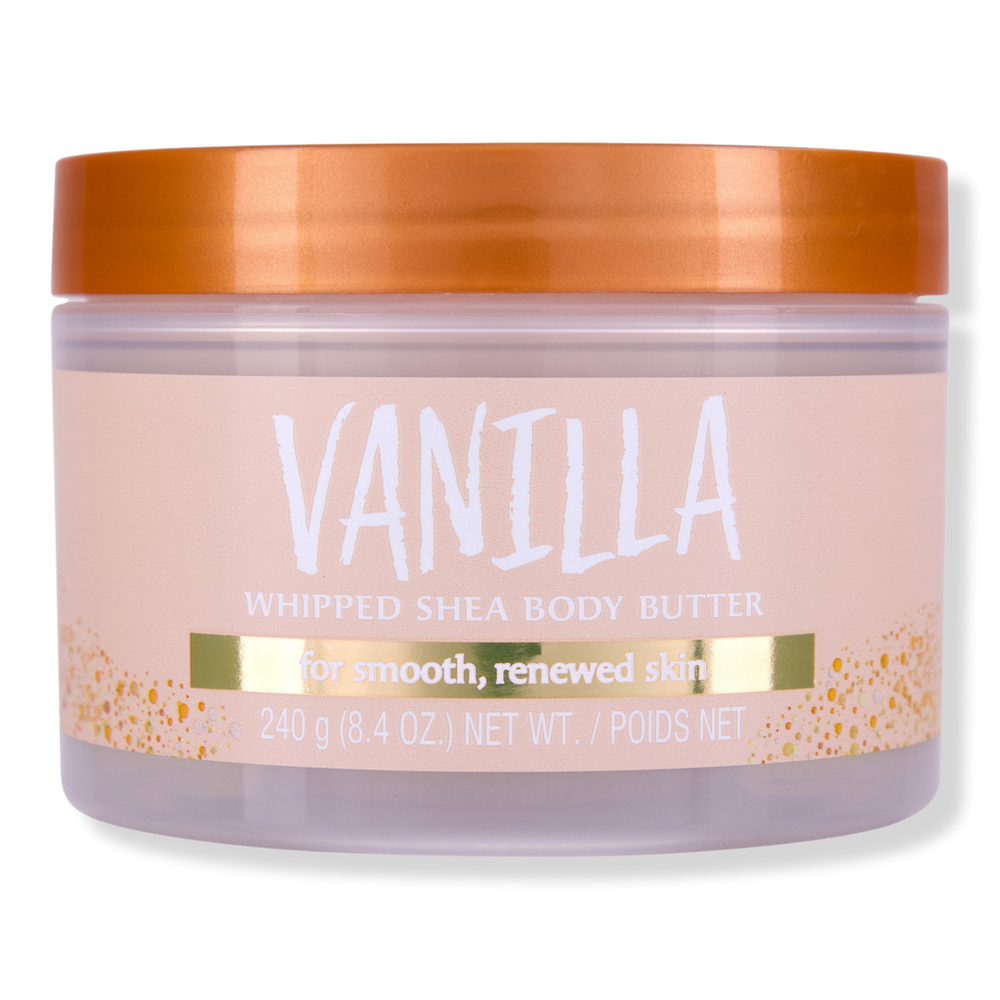 WHIPPED BUTTER VANILLA 8.4OZ. Features: Limited-Edition Peanuts Vanilla Whipped Shea Body Butter. A warm, creamy vanilla bean scent, perfect for seasonal self-care or gifting. Key Ingredients: Colloidal gold is known to plump skin and help promote skin elasticity. Vanilla contains antioxidant properties and helps maintain moisture. Disclaimers: Packaging may vary.
