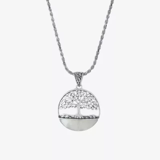 Tree Of Life Womens White Mother Of Pearl Sterling Silver 16 Inch Pendant Necklace