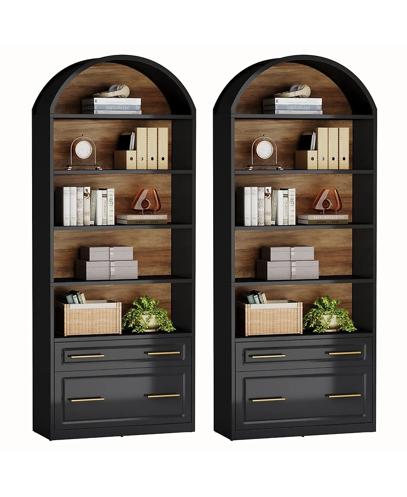 Tribesigns 76.8" Tall Arched Bookcase Set of 2, 5-Tier Bookshelf with File Cabinet Drawer, Modern Freestanding Wooden Bookshelves, Storage Shelve in Franklin, TN