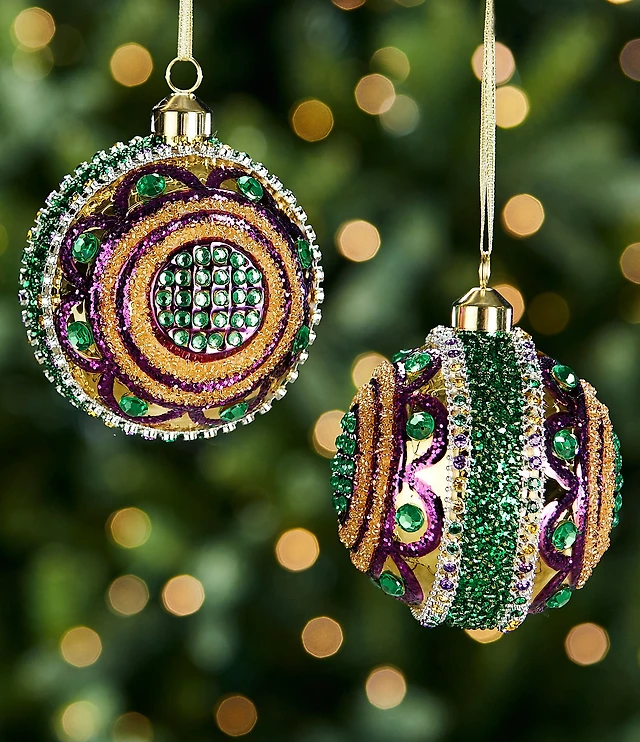 Trimsetter Mardi Gras Collection Jeweled Glass Ball Ornament, Set of 2
