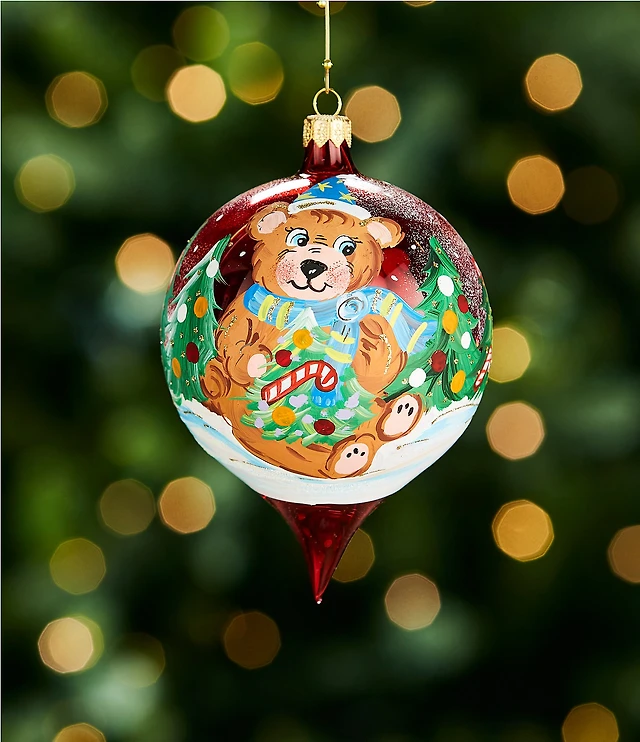 G.DeBrekht Teddy Bear Santa Drop Glass Ornament