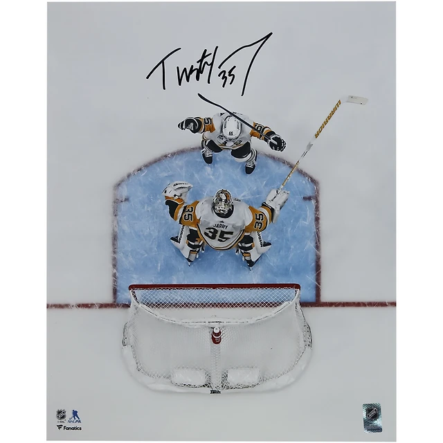 Tristan Jarry Pittsburgh Penguins Autographed 16" x 20" Goalie Goal Celebration Photograph