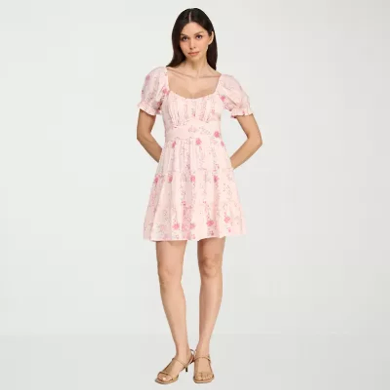 Trixxi Womens Juniors Short Sleeve Floral Fit + Flare Dress