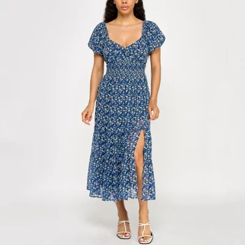 Trixxi Womens Juniors Short Sleeve Floral Midi Fit + Flare Dress