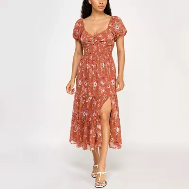 City Triangle Womens Juniors Short Sleeve Midi Fit + Flare Dress