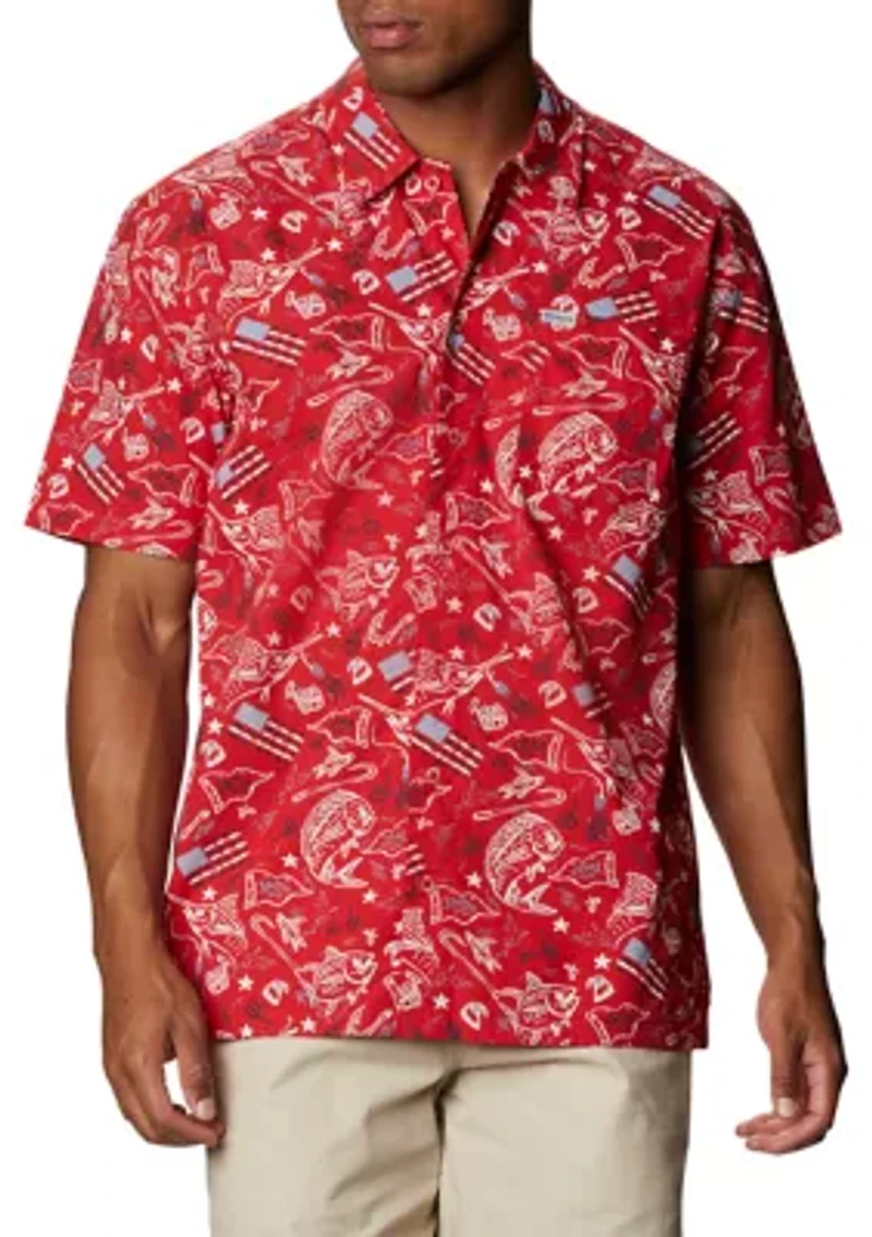 This shirt from Columbia is a must-have for any fishing enthusiast. Made from 100% cotton, it's breathable and comfortable, perfect for a day on the water. The regular fit and spread collar provide a classic, relaxed look, while the button closure ensures a secure fit. With its abstract pattern and vented design, this shirt is both stylish and functional. Whether you're casting a line or just relaxing on the beach, this shirt will keep you looking and feeling your best. Button closure Spread collar Short sleeves Patch pocket Mesh lining Regular fit Imported Material & Care Cotton Machine washable