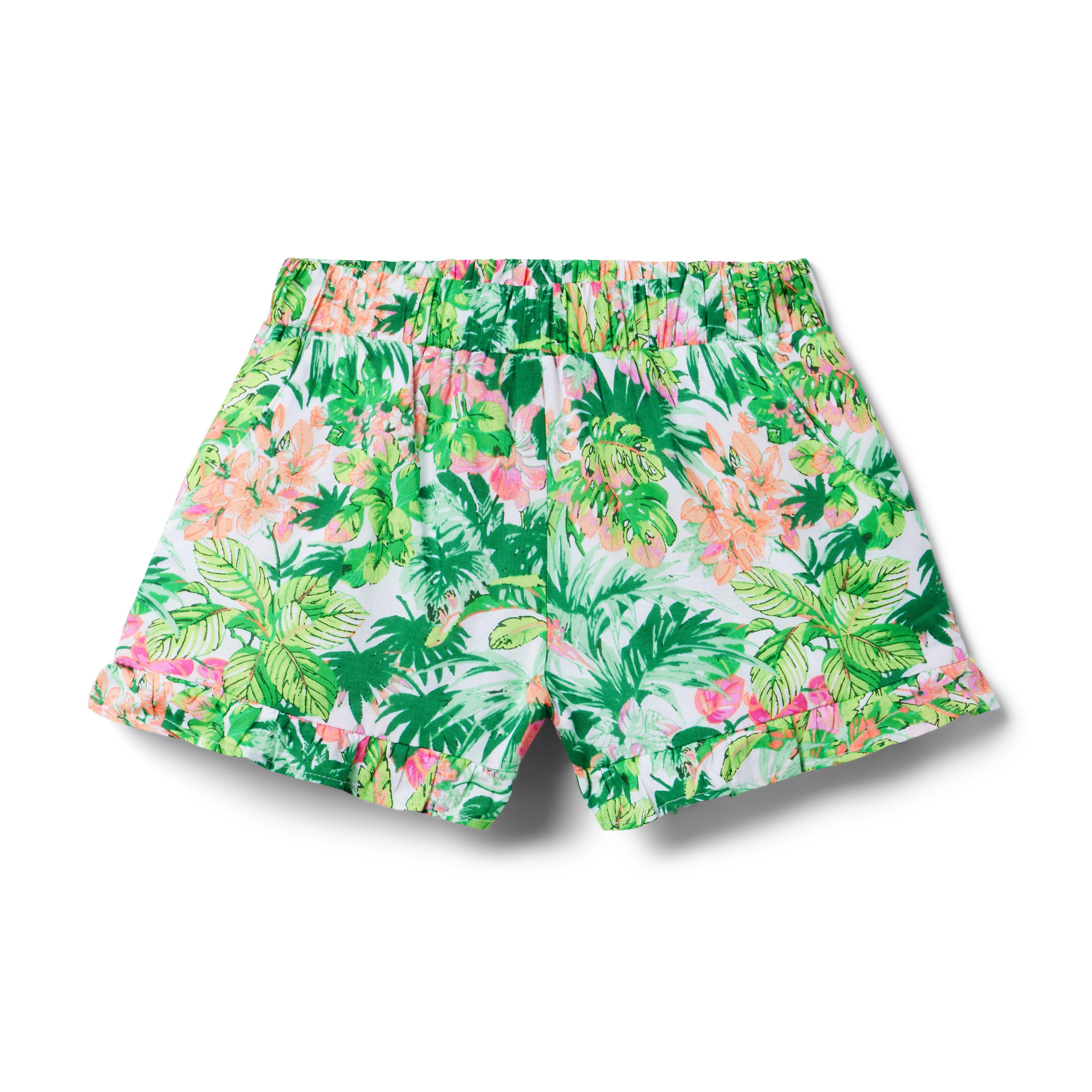 Tropical Floral Ruffle Hem Short