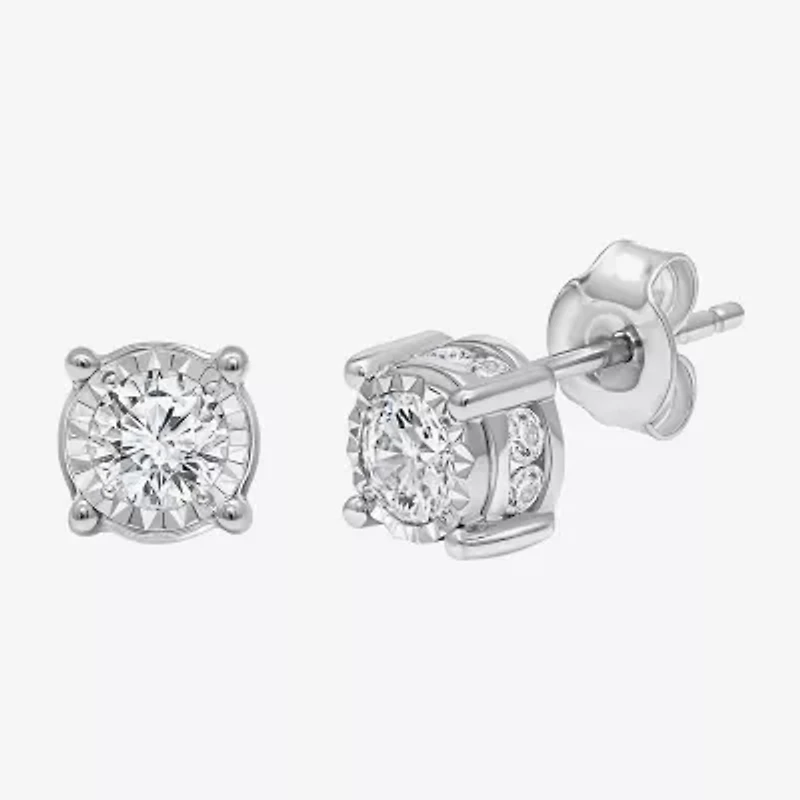 Tru Miracle 1 CT. T.W. Natural Diamond Round Stud Earrings 14K Gold