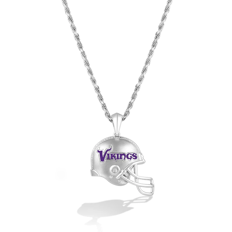 Show off your Minnesota Vikings pride with this shimmering Silver 1/20 CT. T.W. Diamond Helmet Necklace. The pendant suspends along a 22" rope chain with a lobster clasp, ensuring a secure and comfortable fit for everyday wear. It features an enameled Minnesota Vikings logo, allowing you to carry your team pride wherever you go.