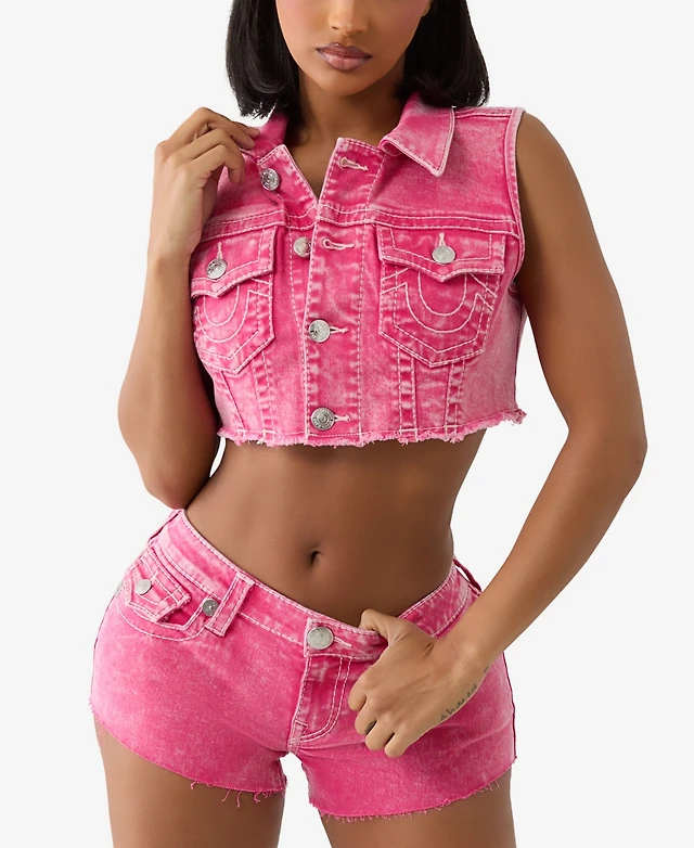 True Religion Women's Big T Cropped Vest Collar Jacket