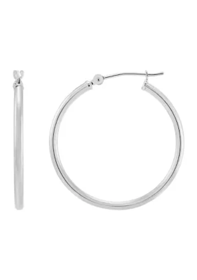 30mm Polished Tube Hoop Earrings in 10K White Gold