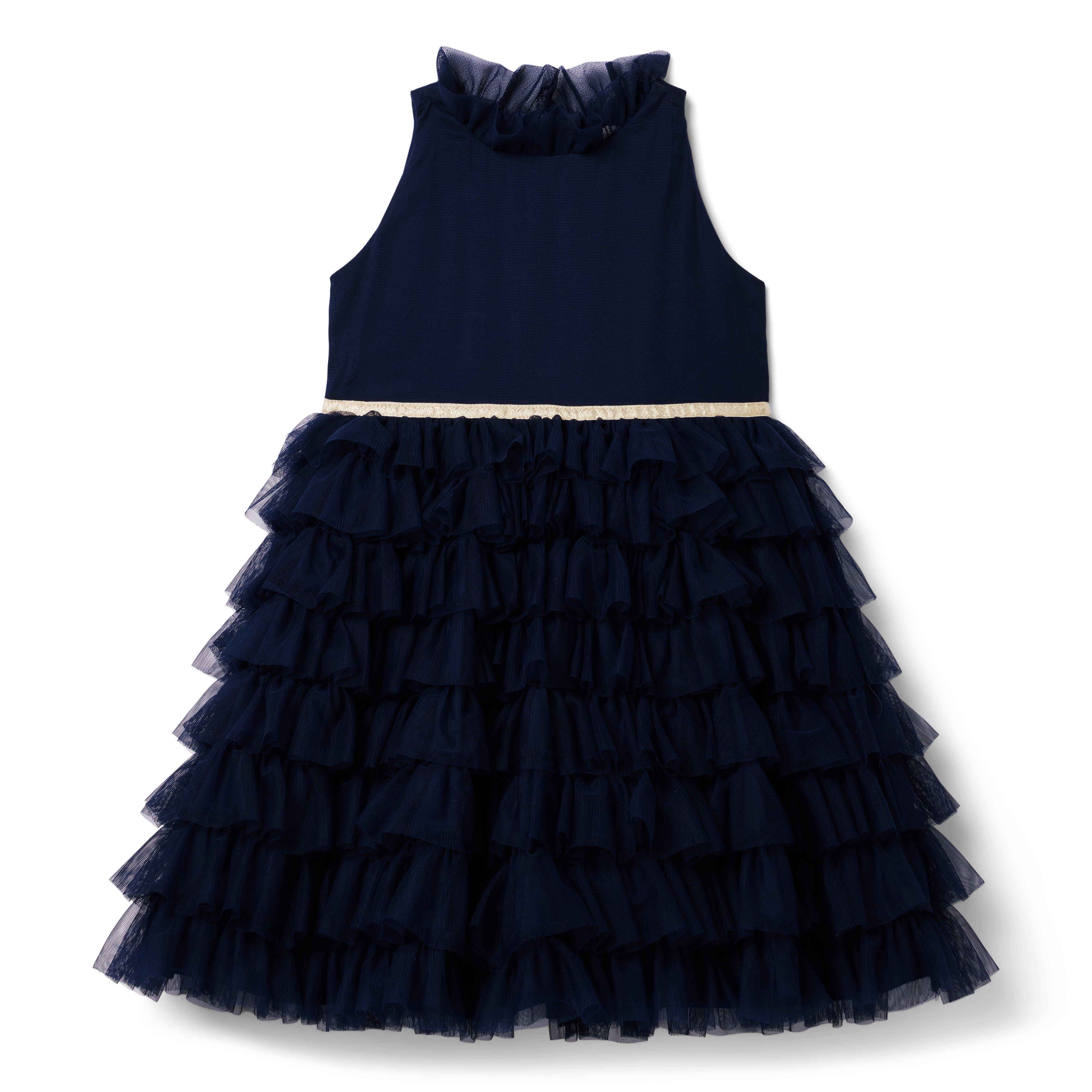 A tiered tulle standout for every celebration. This festive dress with a metallic ribbon at the waist and layers of ruffles, just for the frill of it. 100% Nylon Tulle; Lining: 100% Cotton Fully Lined Button Back Below The Knee Length Bloomer Included (Sizes Up To 18-24M) Machine Washable; Imported