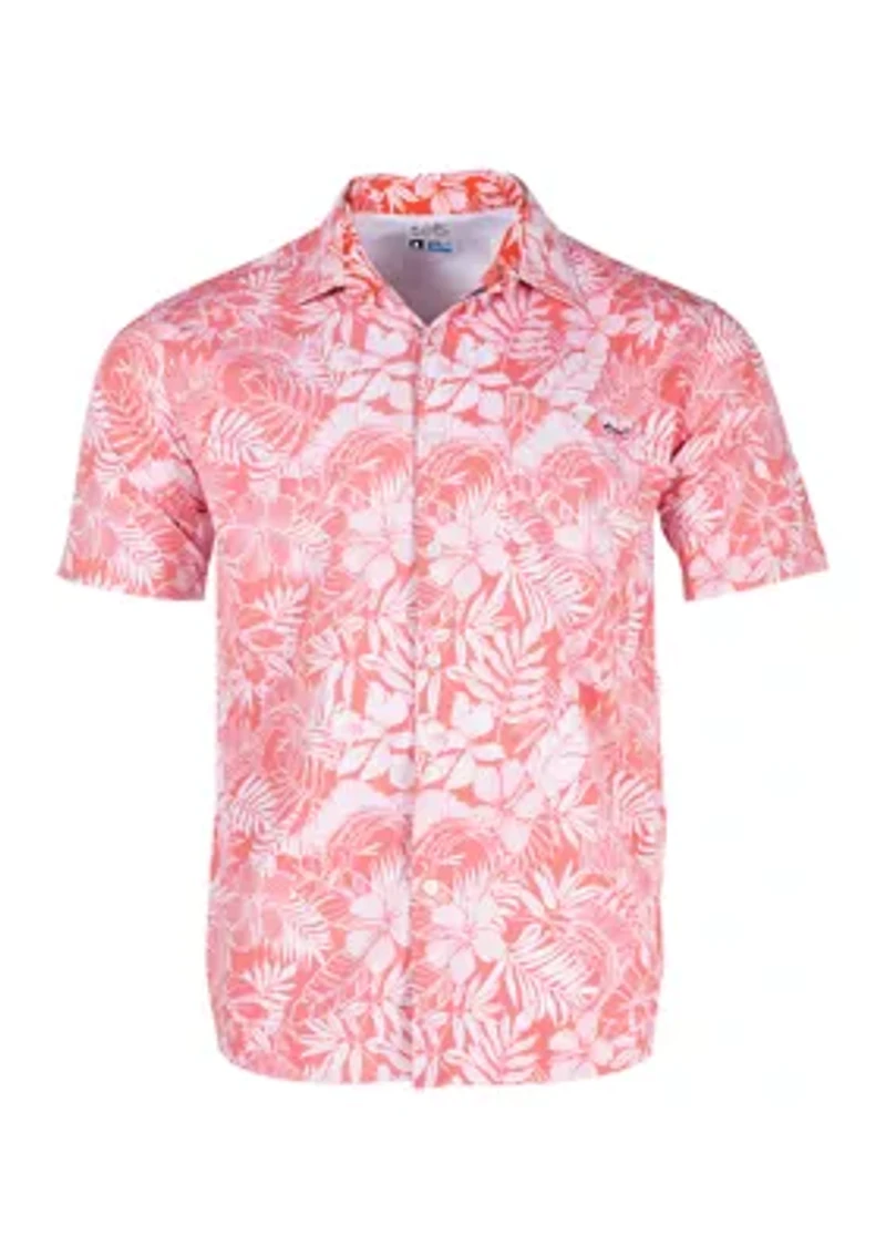 Updated with a tropical pattern, this moisture-wicking shirt from Salt Life features UPF 30 sun protection and is finished with a scalloped hem for a breezy touch. Button closure Button-down collar Short sleeves Tropical pattern Imported Material & Care Nylon, elastane Machine washable