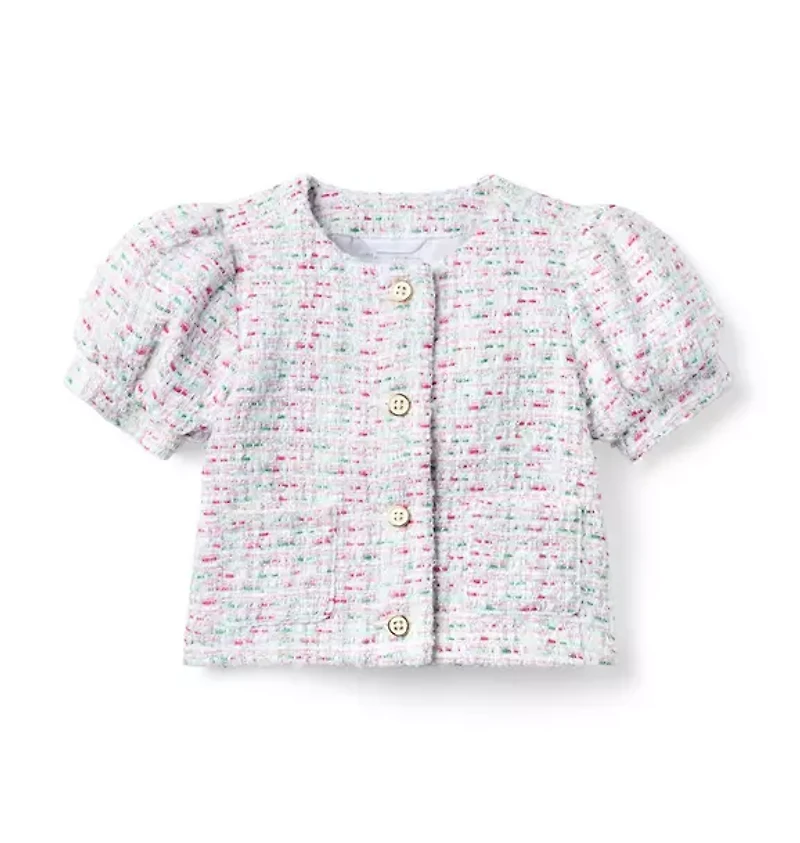 Tweed all about it. Our chic jacket features puff sleeves, gold-rimmed buttons and pockets for the little things. 98% Polyester Boucle/2% Metallic; Lining: 100% Polyester Fully Lined Short Sleeve Button Front; Front Pockets Now Including Tween Sizes Up To 16 Machine Washable; Imported
