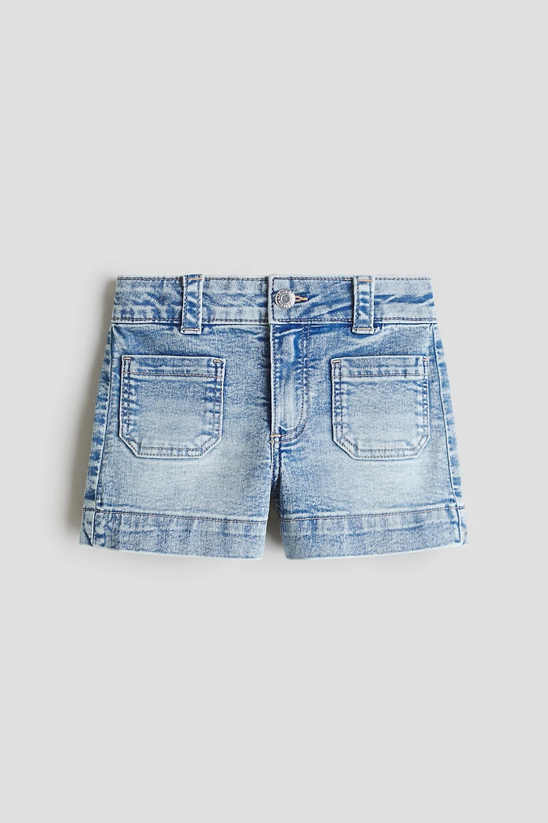 Shorts in soft cotton twill. Adjustable elastic at waistband, zip fly with button, and patch front pockets.