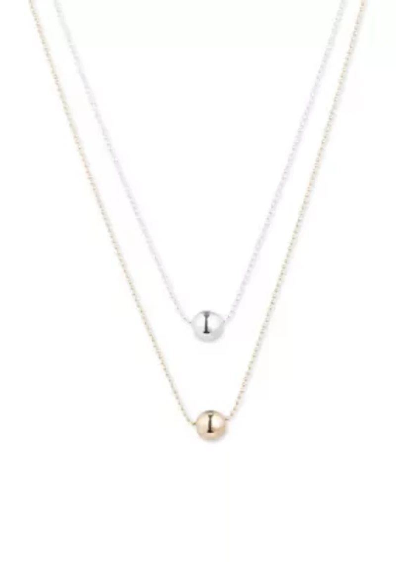 Two Tone 17" Two Row Bead Pendant Necklace